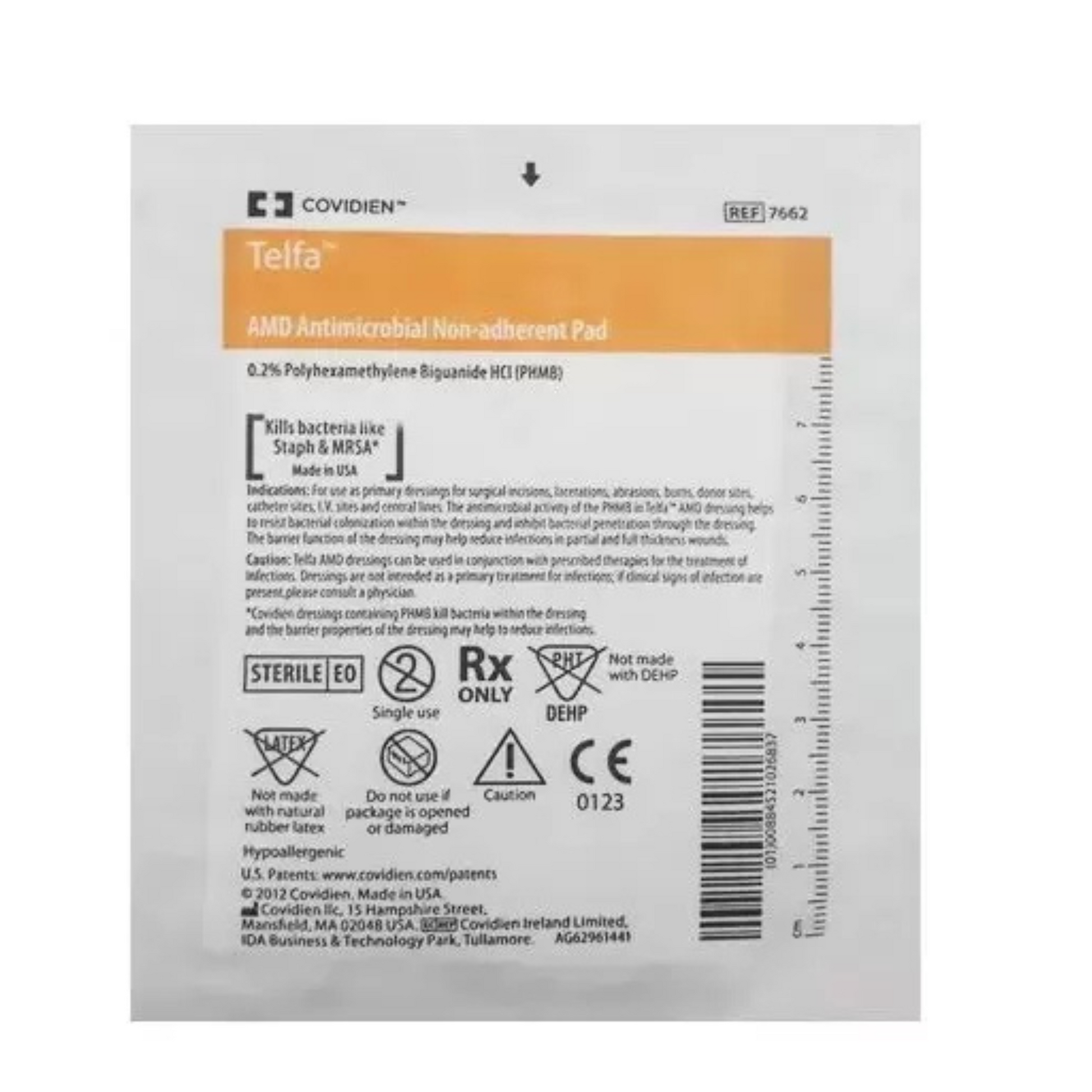 Cobertura de gaze não aderente à ferida Telfa AMD, embebida com Polihexanida (PHMB) a 0,2%. Este curativo é um importante aliado do paciente e das equipes de saúde no tratamento de feridas, em especial pela sua característica de não aderir à lesão, favorecendo o processo de troca do curativo, e a presença do PHMB que atua sobre um amplo espectro de bactérias.